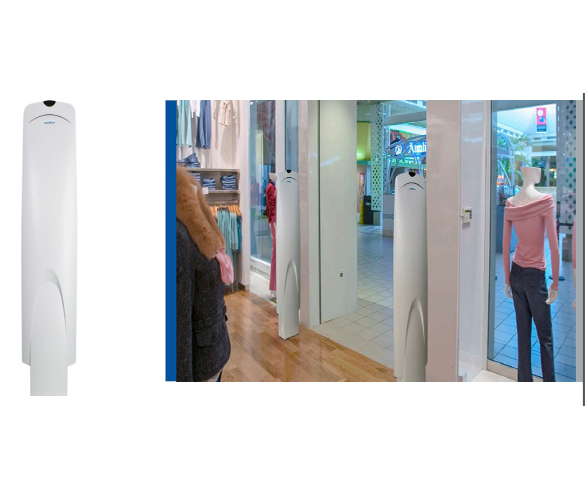 The electronics are contained within the base of the primary pedestal, eliminating the need for an external controller, reducing installation and maintenance costs. The coverage area is 0.9m (3ft) for a single door and 1.5m (5ft) for double doors. Equipped with integrated visual and audible alarms this pedestal will notify store personnel if protected merchandise passes through the detection zone.