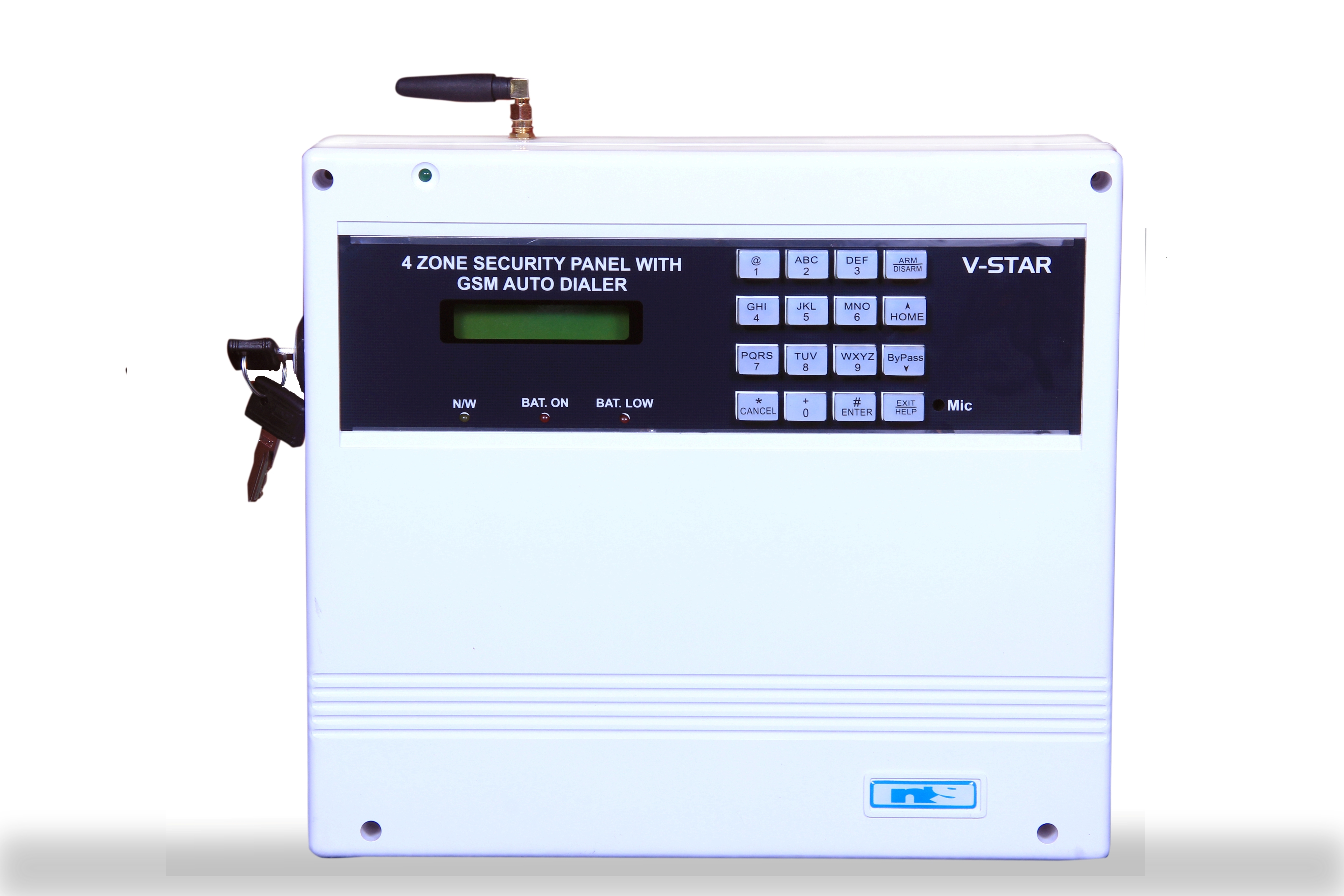 • 3 + 1 Zone Security panel with Inbuilt GSM Auto dialer with LCD & onboard Key Pad.